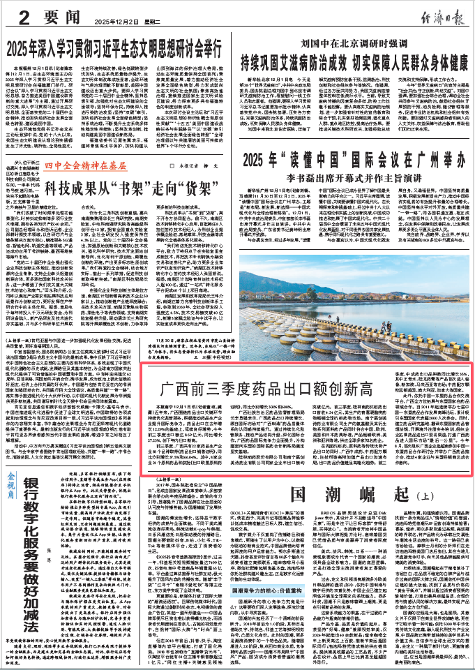 此外,依托中国—东盟药品合作交流平台,广西全方位拓展与东盟国家在药品领域合作。自2011年起连续举办七届中国—东盟药品合作发展高峰论坛,累计吸引东盟国家代表超2000人次参会。同时,建立药品研究基地,翻译东盟国家药品管理法规,开展境外注册实务培训,组织企业拓展药品进出口贸易渠道,打通广西药品进入国际市场“最后一公里”。今年8月,首次组织广西企业赴越南参加中国—东盟药品合作研讨会并举办广西药品推介会,推动4家企业与东盟经销商达成合作意向。